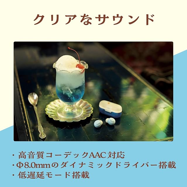 クリームソーダをモチーフにしたレトロポップなデザインのBluetooth(R)完全ワイヤレスステレオヘッドホンです。