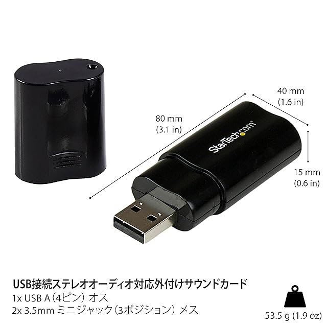 商品名:StarTech.com USB接続ステレオオーディオ変換アダプタ ヘッドフォン/マイク用3.5mmミニジャック USB-A オス - 2x 3.5mm 3極ミニジャック メス ICUSBAUDIOB