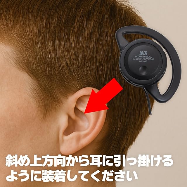 マクサー電機 外れにくい 耳かけ イヤホン 3m 耳掛け部分がくるっとまわる 左右どちらの耳でも装着可能