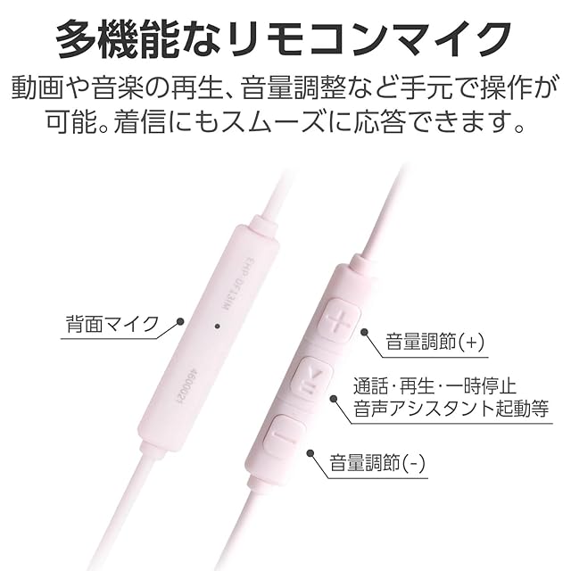 エレコム イヤホン Type-C 有線 インナーイヤー (セミオープン) 高耐久ケーブル 断線しにくい 音声と映像のズレなし 【再生/音量調整コントローラー付き】 [ iPhone 16e / 16シリーズ 対応 ] ピンク EHP-DF13IMPN | LIS MART