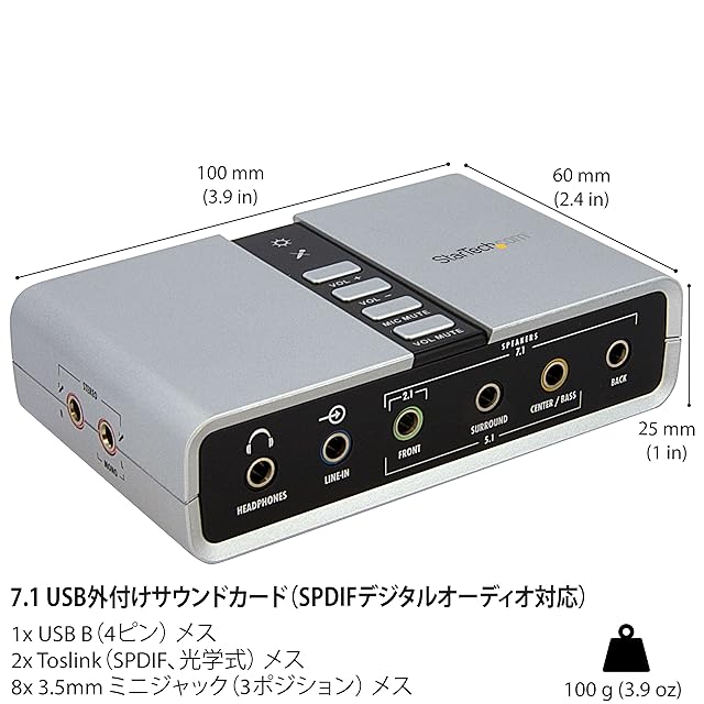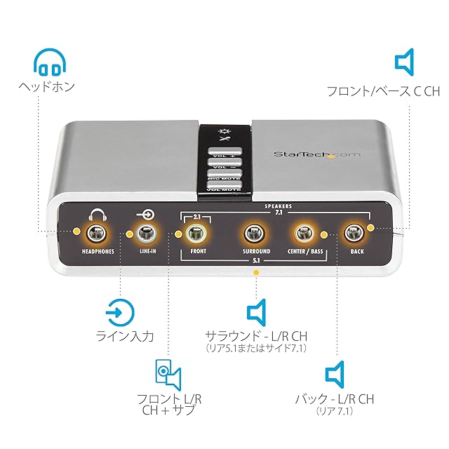 StarTech.com 7.1ch対応USB-DACヘッドホンアンプ S/PDIF対応 8x 3.5mmミニジャック 2x 3.5mmトスリンク角型コネクタ ICUSBAUDIO7D | LIS MART