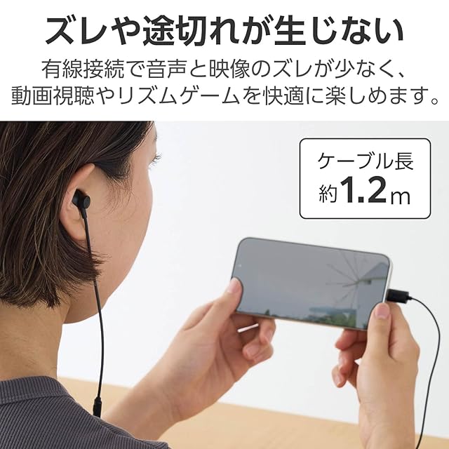 有線接続で音声と映像のズレが少なく、動画視聴やリズムゲーム(音ゲー)など、ストレスなく快適に楽しめます。