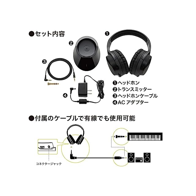 商品名:オーディオテクニカ ATH-EP1000IR 楽器用ワイヤレスヘッドホン 電子ピアノ・ギター・ベース・ドラム練習/動画配信 有線無線兼用 ワイヤレス 【国内正規品】ブラック