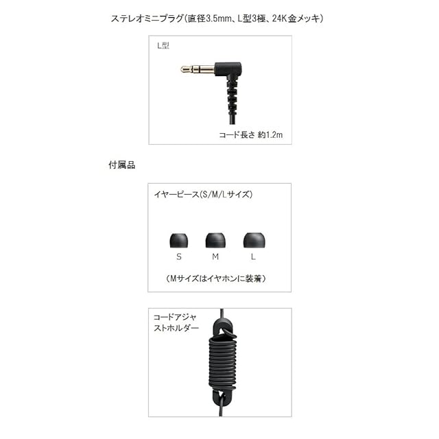 付属品:イヤーピース(S、M、L各2個)(Mはインサイドホンに装着)、コードアジャストホルダー