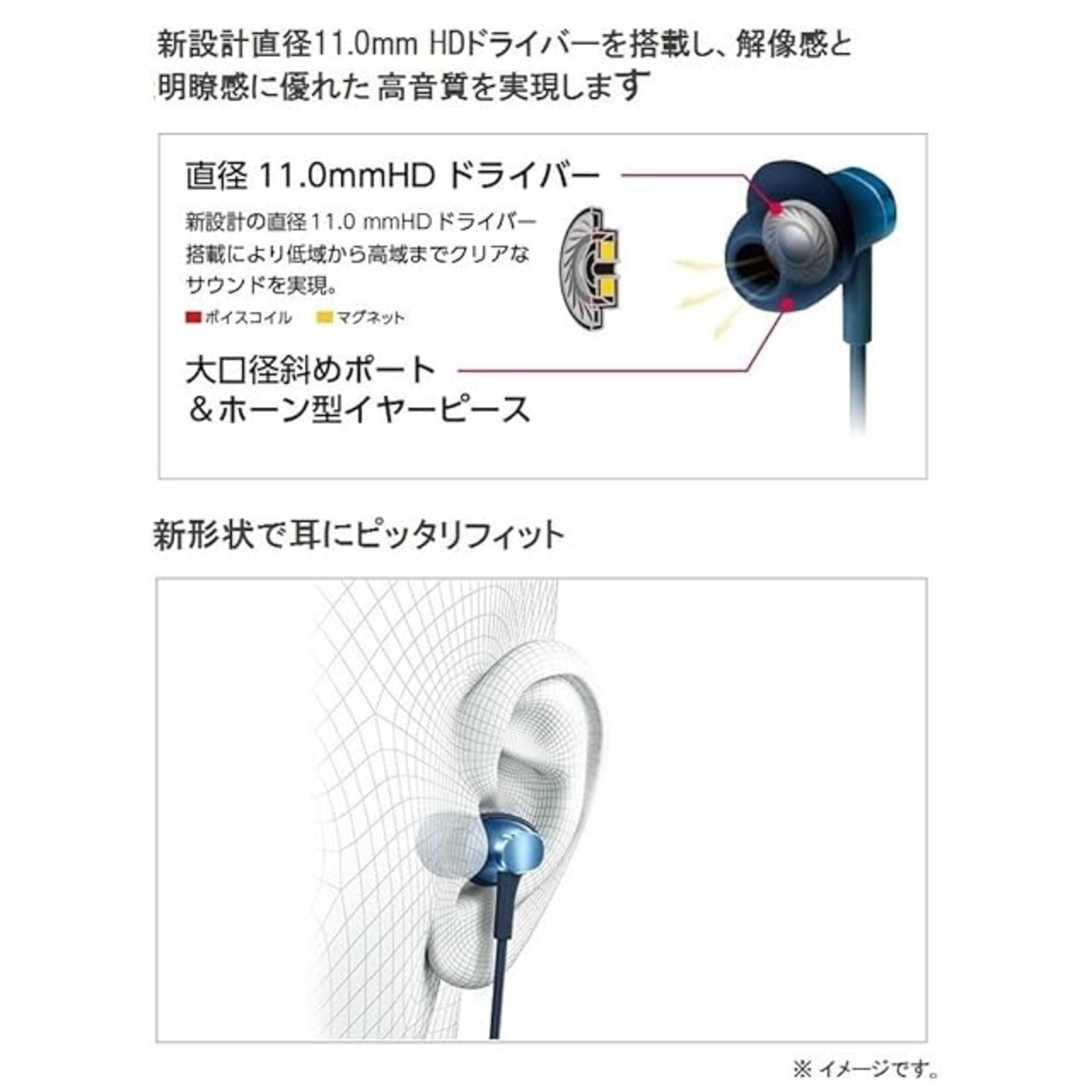 新設計の直径11.0mm HDドライバー搭載により低域から高域までクリアなサウンドを実現。