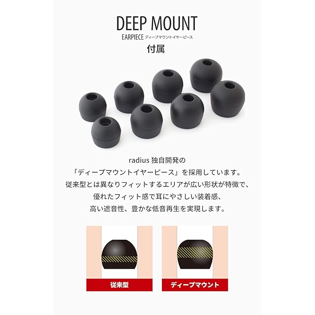 ディープマウントイヤーピース標準搭載