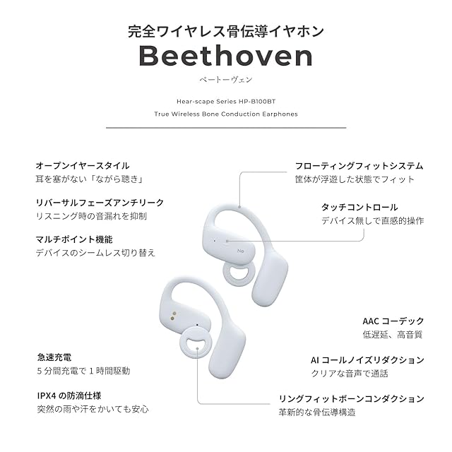 商品名:ラディウス radius HP-B100BT 完全ワイヤレス骨伝導ワイヤレスイヤホン Beethoven : Bluetooth5.3 Hear-scape Series ながら聴きイヤホン 骨伝導 耳を塞がない 防滴 IPX4 スポーツ 運動 ジム 通話 HP-B100BTBG(ブルーグレー)