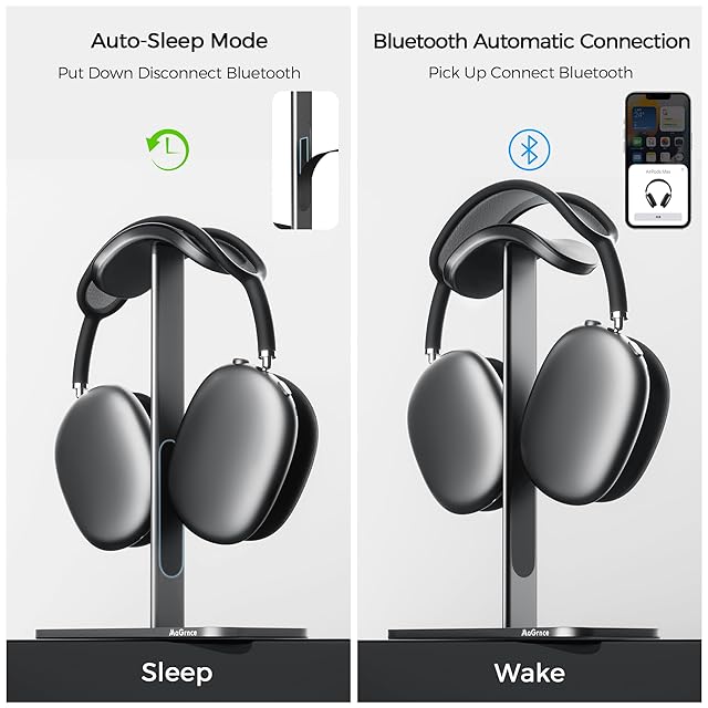 MaGrnce スマートスリープスタンド Airpods Max用 アルミニウムヘッドホンスタンド 休止状態モード付き 自宅/ゲームルーム/ショップ用ヘッドホン収納/ディスプレイ用 (ダークグレー)