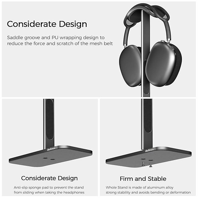 ヘッドフォンスタンドはアルミニウム製で、上部はサドルスタイルのデザインで、レザーで包まれており、ハイエンドでファッショナブルなヘッドホンをオフに設定する際にヘッドフォンが滑り落ちるのを防ぎます。 中央のサポート部分はアルミニウム製で、Airpods maxにハイバネーションモードを提供し、ヘッドホンのバッテリーを保護し、バッテリー寿命を延ばします。 下部にはアルミニウムプレート全体が底部の重量を最大化し、ブラケットがひっくり返らないようにします。底部には滑り止めスポンジパッド全体が固定されています。ペンサーフェスブラケットの動きにより、ヘッドホンを最大限に安全に保護します。 このスタンドは、家庭、ゲームルーム、店舗のヘッドセット収納やディスプレイキャビネットのディスプレイに最適です。