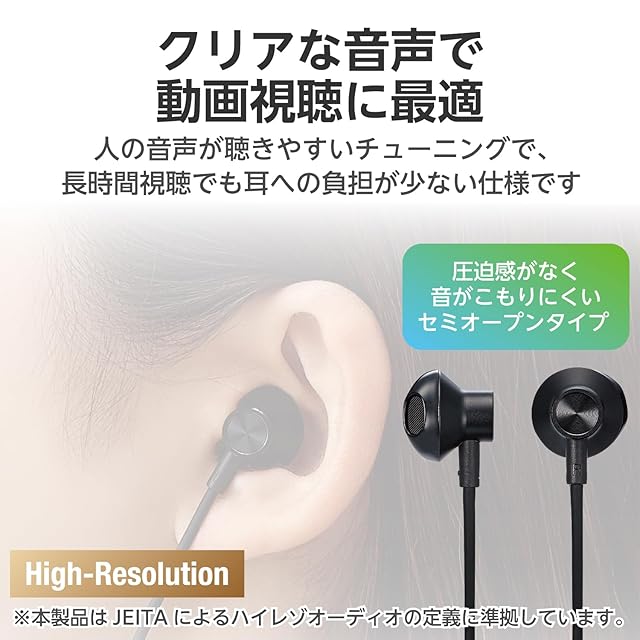 エレコム Type-C イヤホン マイク付き 【通話可・音声調整可】 タイプC インナーイヤー型 インナーイヤータイプ 有線 音声と映像のズレなし リモコン付き 【耳の負担減】 1.2m [ iPhone 16e / 16シリーズ 対応 ] ブラック EHP-DF10IMBK | LIS MART
