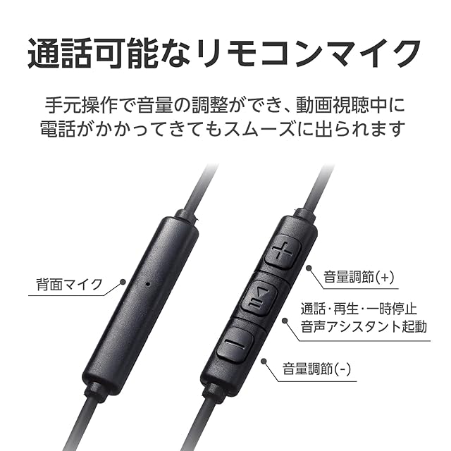 リモコン・マイク付きモデルのため、手元操作で音量の調整が可能。動画視聴中に電話がかかってきてもスムーズに出られます。