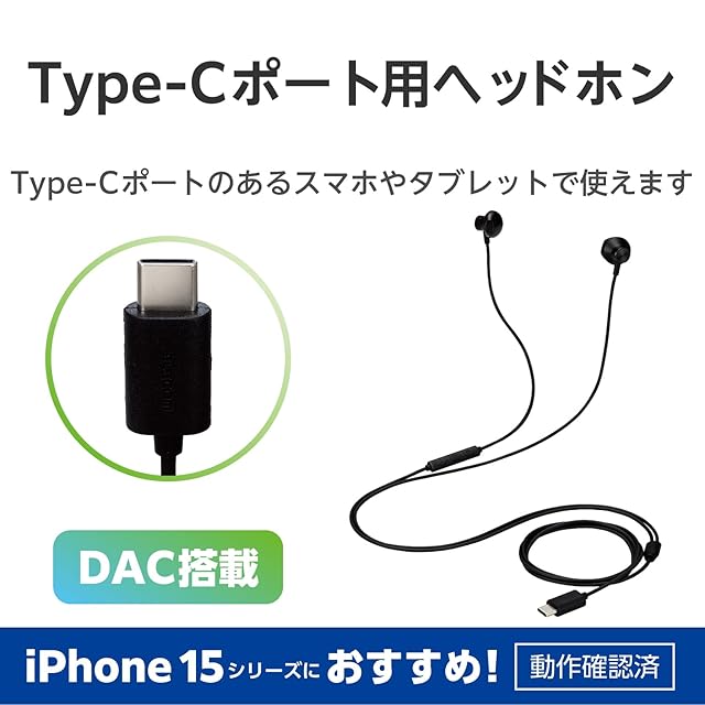 商品名:エレコム Type-C イヤホン マイク付き 【通話可・音声調整可】 タイプC インナーイヤー型 インナーイヤータイプ 有線 音声と映像のズレなし リモコン付き 【耳の負担減】 1.2m [ iPhone 16e / 16シリーズ 対応 ] ブラック EHP-DF10IMBK
