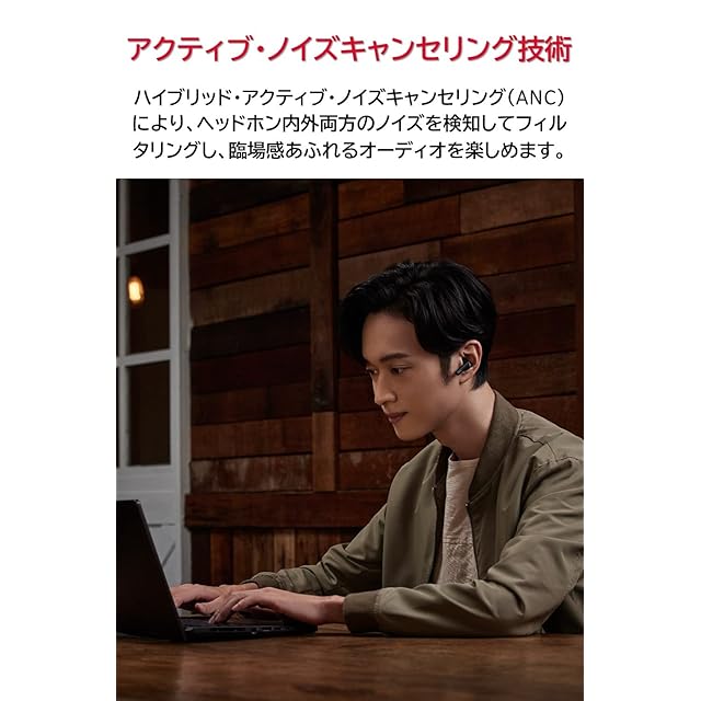 【アクティブノイズキャンセリング】ハイブリッドANCテクノロジーは、ヘッドフォンの内側と外側からのノイズを検知してフィルタリングし、臨場感あふれるオーディオ体験を実現します。