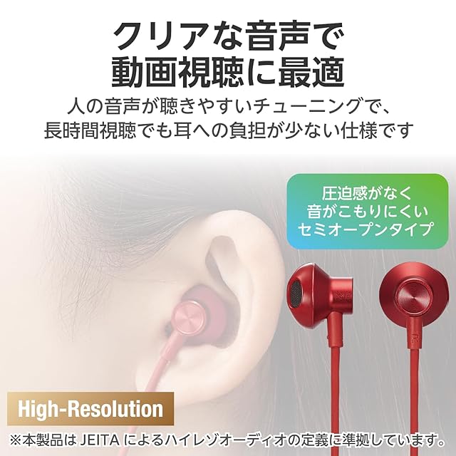 エレコム Type-C イヤホン マイク付き 【通話可・音声調整可】 タイプC セミオープン型 インナーイヤータイプ 有線 音声と映像のズレなし リモコン付き 【耳の負担減】 1.2m [ iPhone 16e / 16シリーズ 対応 ] レッド EHP-DF10IMRD | LIS MART