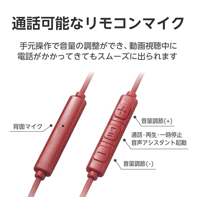 リモコン・マイク付きモデルのため、手元操作で音量の調整が可能。動画視聴中に電話がかかってきてもスムーズに出られます。