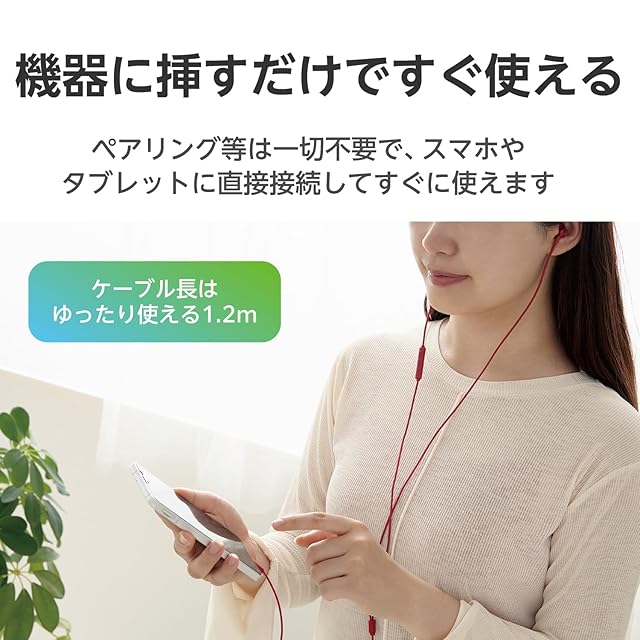 商品名:エレコム Type-C イヤホン マイク付き 【通話可・音声調整可】 タイプC セミオープン型 インナーイヤータイプ 有線 音声と映像のズレなし リモコン付き 【耳の負担減】 1.2m [ iPhone 16e / 16シリーズ 対応 ] レッド EHP-DF10IMRD