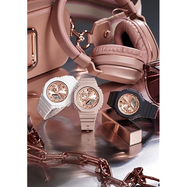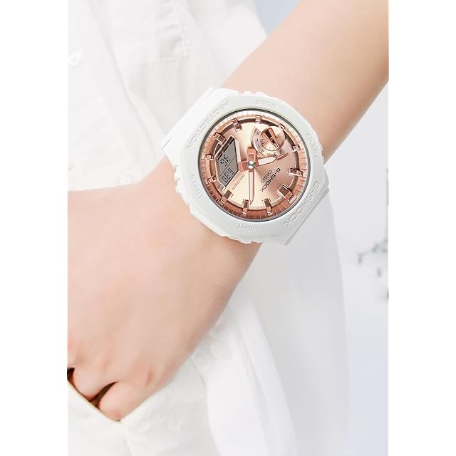 レディース向けG-SHOCK: 人気のデジタル・アナログコンビモデル、GMA-S2100シリーズからピンクゴールドの蒸着文字板が輝くモデルの紹介です。