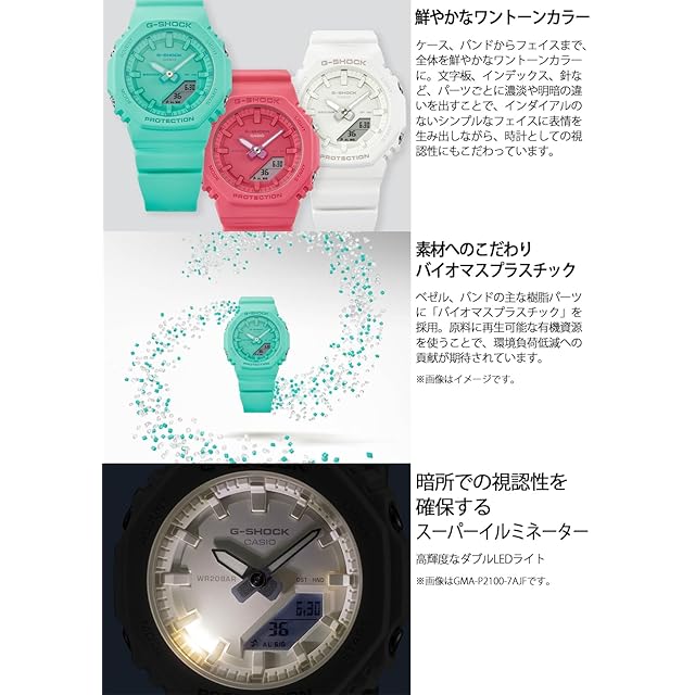 レディース向けG-SHOCK: 人気のデジタル・アナログコンビモデルGMA-S2100を更に小型化したモデルです。GMA-P2100シリーズは、バンドの長さも短くすることで、華奢な手元によりフィットするように装着性を高めております。