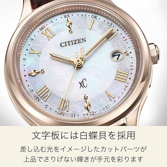 商品名:[Citizen] 腕時計 クロスシー 電波時計 軽量 革 サクラピンク 白蝶貝 防水 光発電エコ・ドライブ ギフト ビジネス アナログ ホワイト 白 日付 秒針 シンプル 電波ソーラー ES9497-02D レディース ブラウン