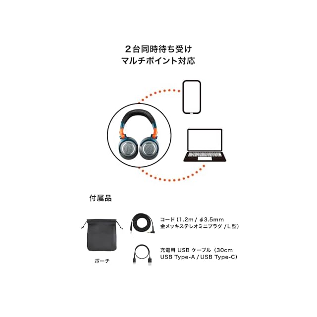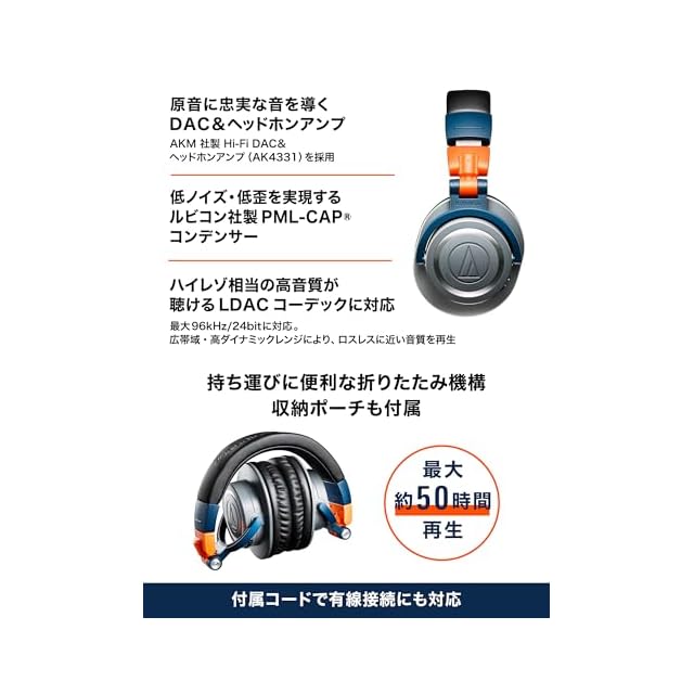 商品名:オーディオテクニカ ワイヤレスヘッドホン 限定カラー ATH-M50xBT2 LAB 45mm大口径ドライバー / Bluetooth5.0 AAC/LDAC/低遅延モード/ビームフォーミングマイク/Alexa/Fast Pair/有線接続対応 / 50時間再生 / マルチペアリング
