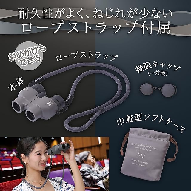 【超広角 × ハイアイポイントで唯一無二の感動体験!】これまでの「超広角双眼鏡」は、アイレリーフ(目とレンズの距離)が短く、広角ではない双眼鏡と比べると覗きにくい設計となっていました。「超広角視界をもっと快適に楽しんでいただきたい」そんな想いを実現するために、SW8×25WPは光学設計を工夫し、超広角とロングアイレリーフを両立しました。SW8×25WPを覗くと、まるですぐそこにステージや舞台があるかのような、リアルな世界観に没入できます。超広角のため、コンサートはもちろん、歌劇やミュージカルなどにもぴったり。さらに、アウトドアや野外フェスでも安心の防水設計。唯一無二の感動体験、超広角によるあなただけの特別な視界をお楽しみください。