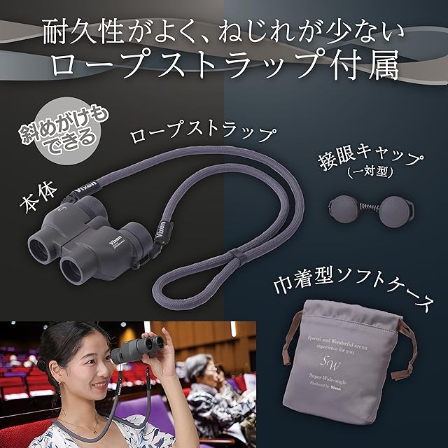 【超広角 × ハイアイポイントで唯一無二の感動体験!】これまでの「超広角双眼鏡」は、アイレリーフ(目とレンズの距離)が短く、広角ではない双眼鏡と比べると覗きにくい設計となっていました。「超広角視界をもっと快適に楽しんでいただきたい」そんな想いを実現するために、SW10×25WPは光学設計を工夫し、超広角とロングアイレリーフを両立しました。SW10×25WPを覗くと、まるですぐそこにステージや舞台があるかのような、リアルな世界観に没入できます。超広角のため、コンサートはもちろん、歌劇やミュージカルなどにもぴったり。さらに、アウトドアや野外フェスでも安心の防水設計。唯一無二の感動体験、超広角によるあなただけの特別な視界をお楽しみください。