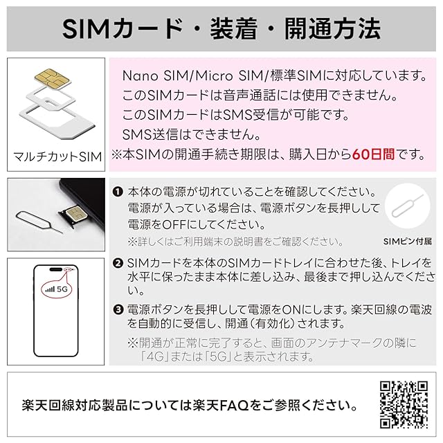 注意事項:本SIMカードでは音声通話機能はご利用いただけません。本商品は、SIMロックフリー端末でご利用いただけます。詳しくは楽天公式サイトでもご確認可能です。