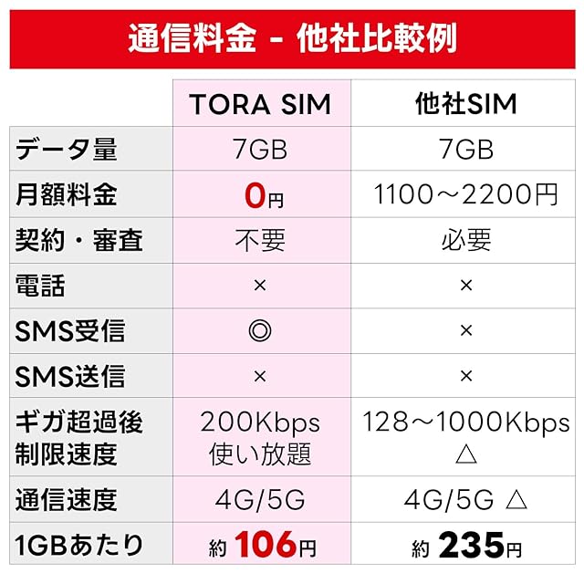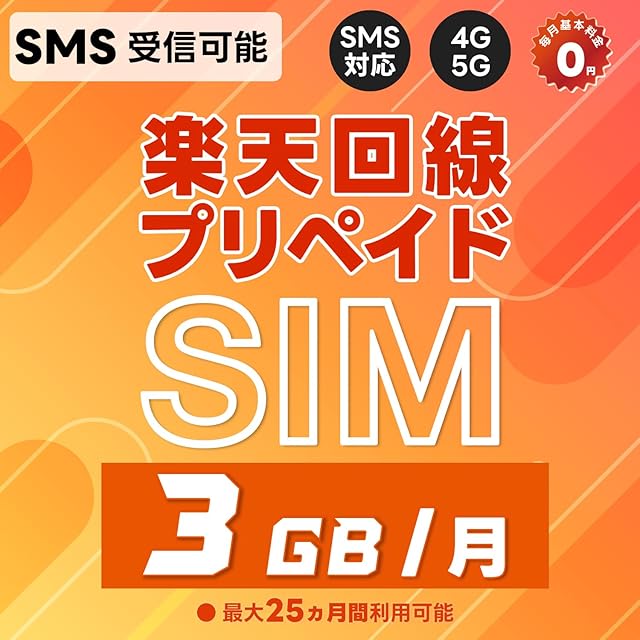 【SMS受信機能付き】LINEやInstagramやUber Eats等SMS認証が必要なアプリを簡単に登録することが可能!</br> 【SMSの利用】日本でも海外(73ヵ国)でもSMSが制限無しで受信可能。送信機能は付きません。</br> 【楽天回線】あんしんの楽天モバイル回線の高速データ通信(5G/4G)がご利用いただけます。</br> 【ギガ容量】日本国内では毎月3GBまで、海外は毎月1GBまで高速通信がご利用可能。超過後も200Kbpsで使い放題!</br> 【SIMサイズ】マルチカットSIMで、nanoSIM / microSIM / 標準SIM に対応しております。</br> 【かんたん利用】開通手続き、契約手続き、本人確認など一切不要!SIMカード装着で即利用可能!</br> 【APN設定不要】楽天回線に対応する端末はAPN情報自動で認識されます。</br> 【iPhone対応】iOSバージョン14.5以降で、iPhone 6S~16ProMaxに対応しています。</br> 【Android対応】Android OSバージョン10以降でご利用いただけます。</br> 【利用期間】初回通信月(初月無料特典付き)+24ヵ月(2年間)、最長25ヵ月間ご利用可能です。</br> 【有効期限】購入日からではなく、初回通信月(初月無料)から利用開始できますので、最大25カ月をむだなく利用可能!</br> 【延長利用】利用期間の延長を希望する方は、利用期限が切れる前(2か月前)までにご連絡ください。</br> 注意事項:本SIMカードでは音声通話機能はご利用いただけません。</br> 注意事項:本商品は、SIMロックフリー端末でご利用いただけます。詳しくは楽天公式サイトでもご確認可能です。</br> 注意事項:毎月の高速ギガ容量を超過後200Kbpsに低速化されますが、翌月1日に通信速度が通常に戻ります。</br> 注意事項:本SIMの開通期限(初回通信)は、購入日より60日以内となります。</br>
