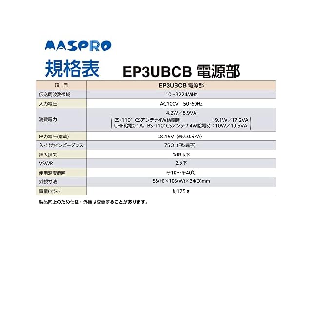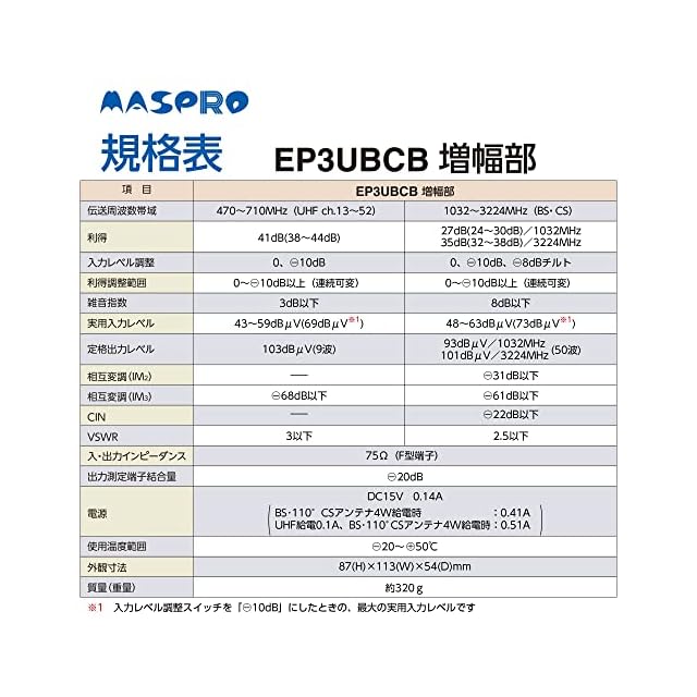 商品名:マスプロ電工 UHF・BS・CSブースター EP3UBCB