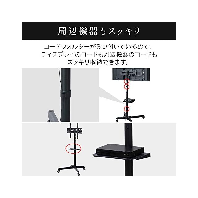 商品名:【32-55型推奨】 アイリスオーヤマ(IRIS OHYAMA) 【オフィス】 テレビスタンド 移動式 高さ調節可 棚付き テレビ台 モニタースタンド ディスプレイスタンド ブラック UTS-S7016S