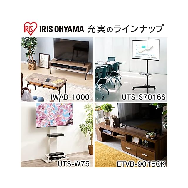 【32-55型推奨】 アイリスオーヤマ(IRIS OHYAMA) 【オフィス】 テレビスタンド 移動式 高さ調節可 棚付き テレビ台 モニタースタンド ディスプレイスタンド ブラック UTS-S7016S | LIS MART