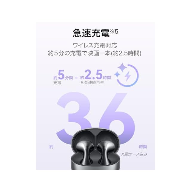【5分の充電で約2.5時間使用可能な超急速充電と36時間動作のロングバッテリー】イヤホン単体で最長4.5 時間(ANCあり)または最長6時間(ANCなし)、充電ケースと組み合わせれば最大36 時間の音楽連続再生が可能です。 さらに、超急速充電に対応。ワイヤレス充電対応。【便利なマルチポイント接続、IP54の防塵防水】2 台のデバイスとの同時接続が可能。また、IP54の防塵防水性能に準拠しています。