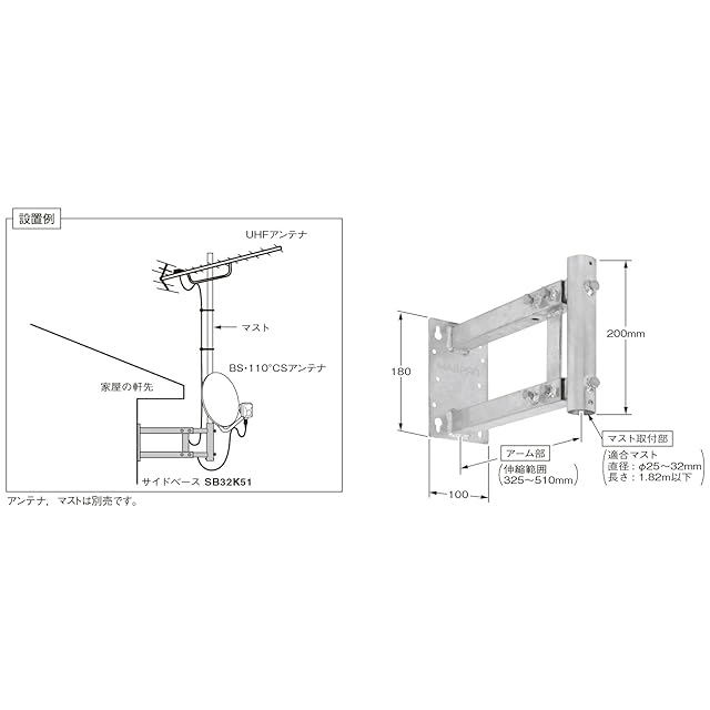 商品名:マスプロ電工 伸縮型サイドベース 伸縮範囲325~510mm SB32K51