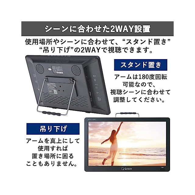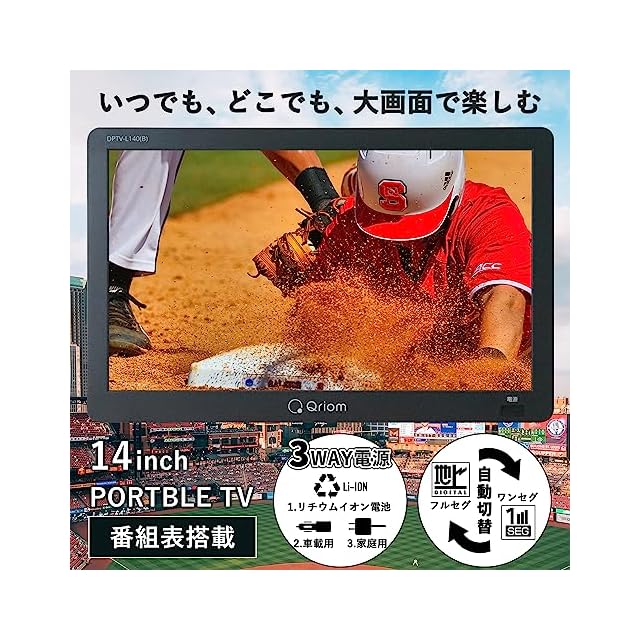 商品名:[山善] ポータブル テレビ 14インチ 小型テレビ 3WAY電源 サブモニター 地上デジタル放送対応 ワンセグ/フルセグ自動切替 録画機能搭載 DPTV-L140(B)