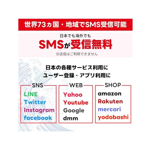 【SMS受信機能付き】LINEやInstagramやUber Eats等SMS認証が必要なアプリを簡単に登録することが可能!日本でも海外(73ヵ国)でもSMSが制限無しで受信可能。送信機能は付きません。