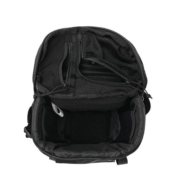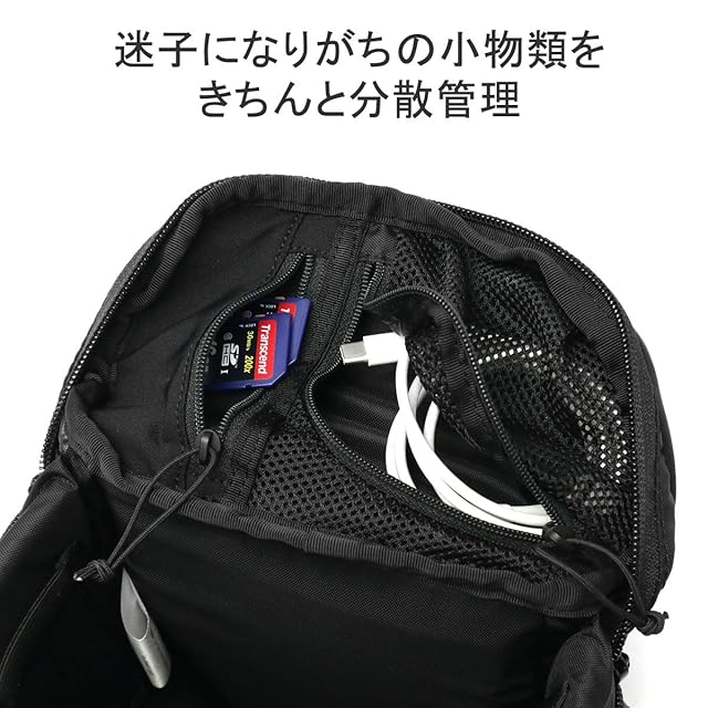 360度パッド入りの本体/パッドつきショルダーストラップ/揺れを抑えるウエストハーネス(収納式)/フロントにファスナーポケット/ファスナーつきメッシュポケット/ストレッチトリコットのポケット/グラブハンドル