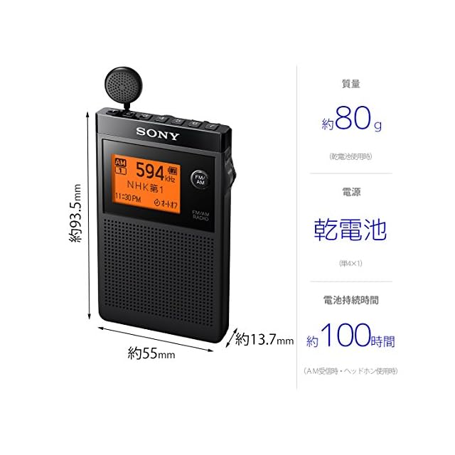 商品名:ソニー PLLシンセサイザーラジオ FM/AM/ワイドFM対応 片耳巻取り 名刺サイズ SRF-R356 ブラック