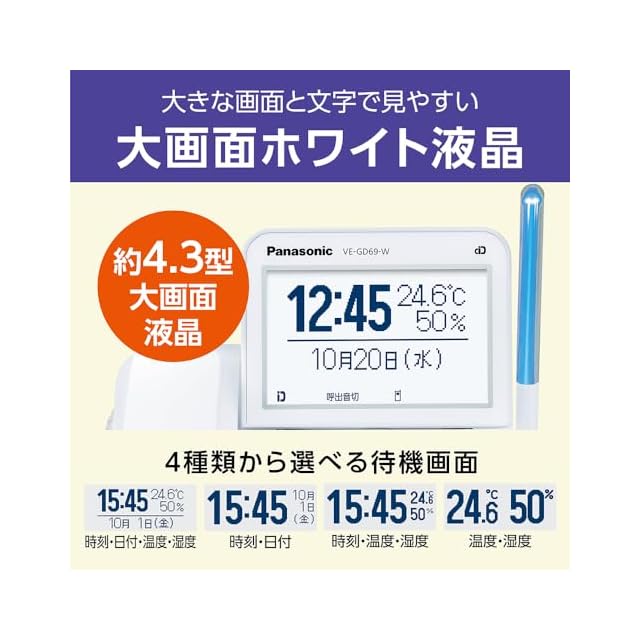 商品名:【優良 防犯 電話機 推奨品】 パナソニック コードレス電話機 VE-GD69DW-W 子機2台 見やすい液晶画面付き 迷惑防止機能 ホワイト VE-GD69DW-W