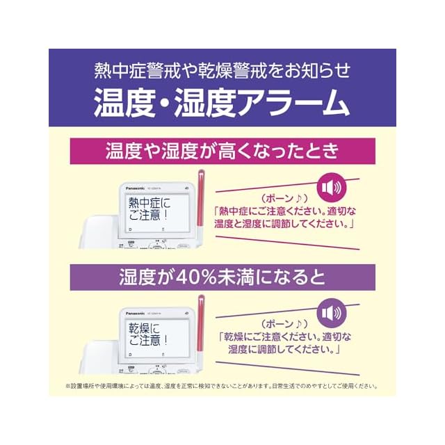 ✅温度・湿度センサー搭載で、熱中症警戒や乾燥警戒をお知らせ。