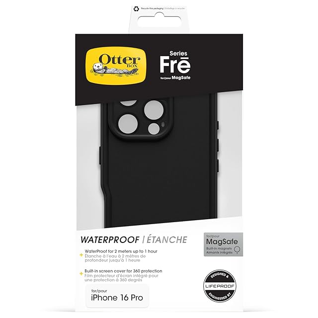 【OtterBox】全米No1ブランド 軍事規格の5倍の強度 iPhone 16 Pro用 360度全面保護 防水 耐衝撃 衝撃吸収 米軍MIL規格 Magsafe対応ケース Fre Black 【国内正規品】 〔オッターボックス〕 | LIS MART