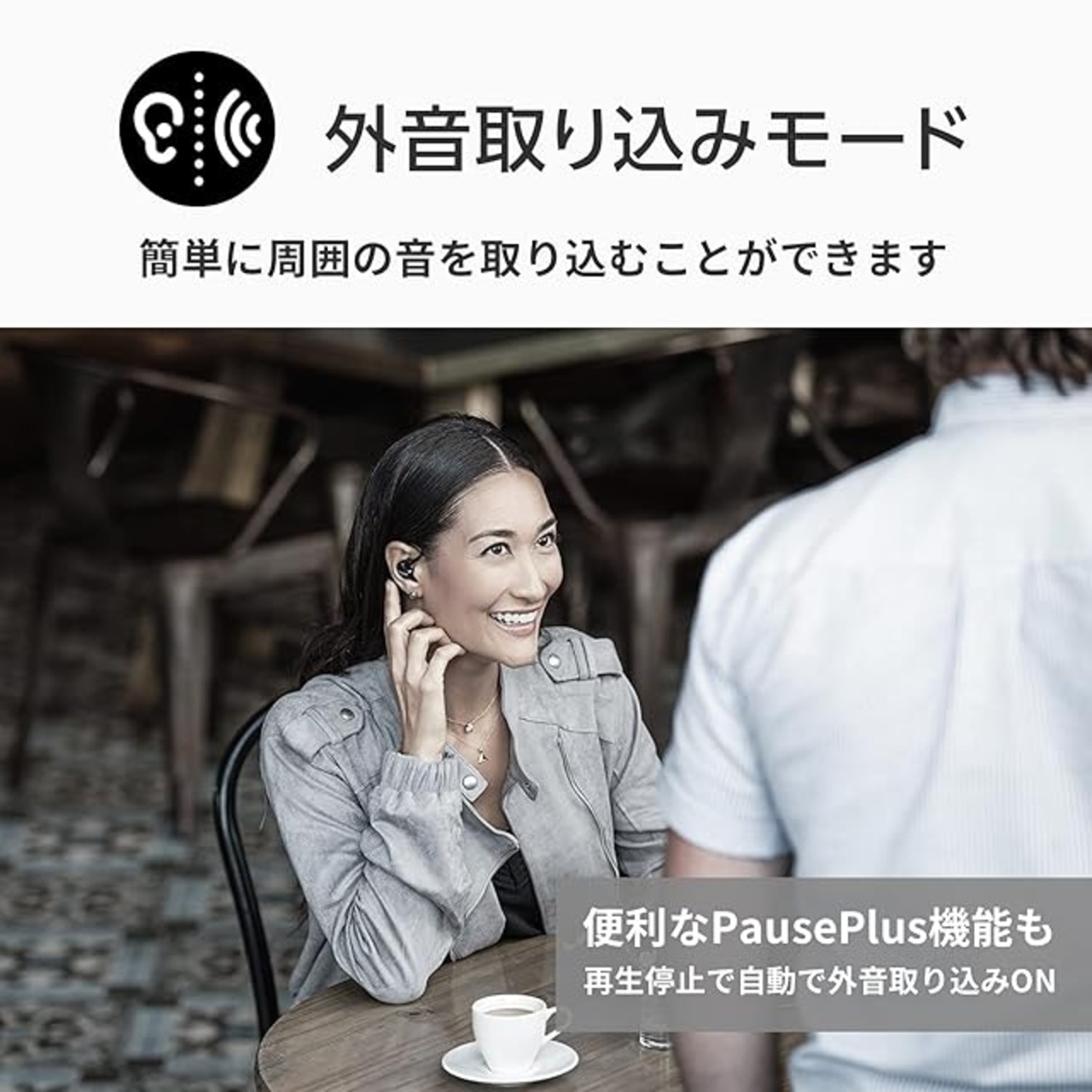 【外音取り込みモード】ボタン1つで周囲の音を確認できます