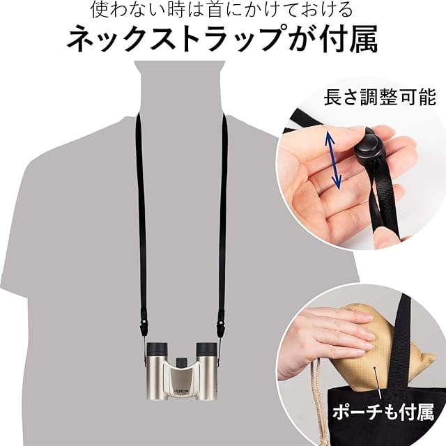【超軽量コンパクトタイプ】折り畳み式双眼鏡、同クラス比※国内メーカー最軽量。※21mm径、マルチコート実装モデル比較。2019年10月ケンコー・トキナー調べ。重量たったの170g。軽量かつコンパクトで、折りたためばさらに小さく。