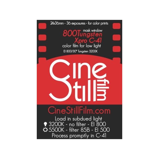 映画のワンシーンを切り出したようなイメージで撮影できます。 映画用タングステン光下フィルムのISO800カラーネガフィルム。 低照度で困難なタングステン光の状況のために設計されています。 多くの異なる照明状況でも使用することができます。 再加工された特注のこのフィルムは、標準的なC-41で安全に現像できます。 タングステン光(3200K)で撮影したい時は、ISO800として設定し、フィルター無しでの撮影が推奨されます。 ナイト撮影に向いていますが、タングステンフィルムなので、太陽光の元では青みがかった色になります。 その際は、色補正フィルターを使用すると(KODAKの85B、ケンコーのW12、富士LBA-12)普通の色味になります。 青みがかった不思議な色を楽しむ場合は、プリントで色補正をしないよう指示して下さい。 ISO感度は800ですが、DXコード未対応フィルムですので、フィルム感度は手動で合わせて下さい。 フィルターを使う際は、露光係数にご注意下さい。 上記の色補正フィルターを装着した場合はISO500にします。 フィルターを装着しても、自動露出機構付きのカメラ(AE)の場合はISO800のままでご使用下さい。