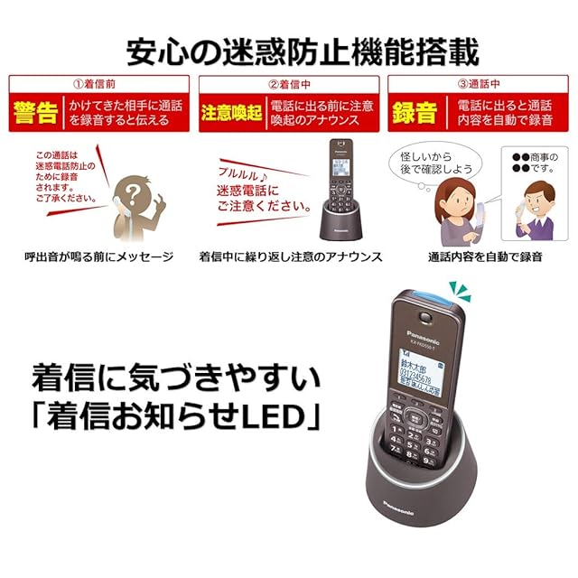 ✅子機が光って分かりやすい「着信お知らせLED」。