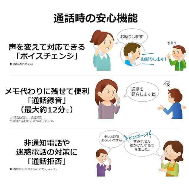 ✅音声:用件録音・通話録音の合計最大約12分、最大件数50件