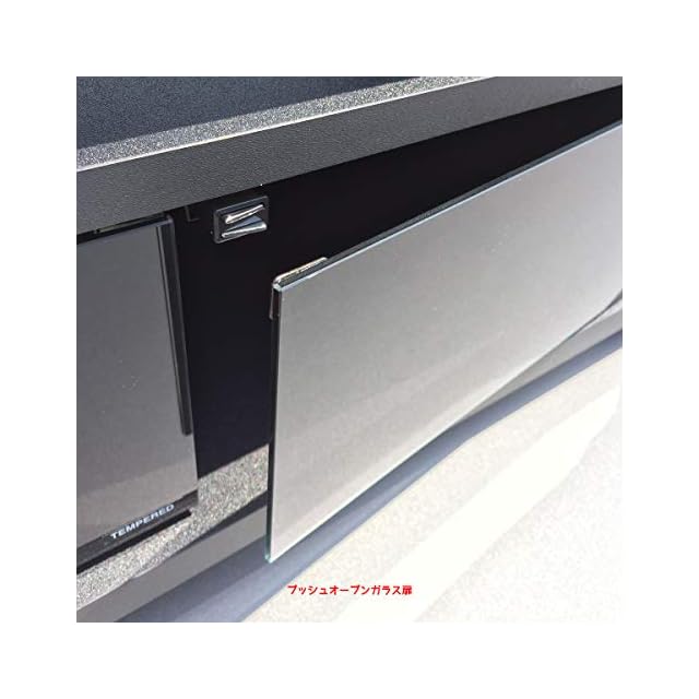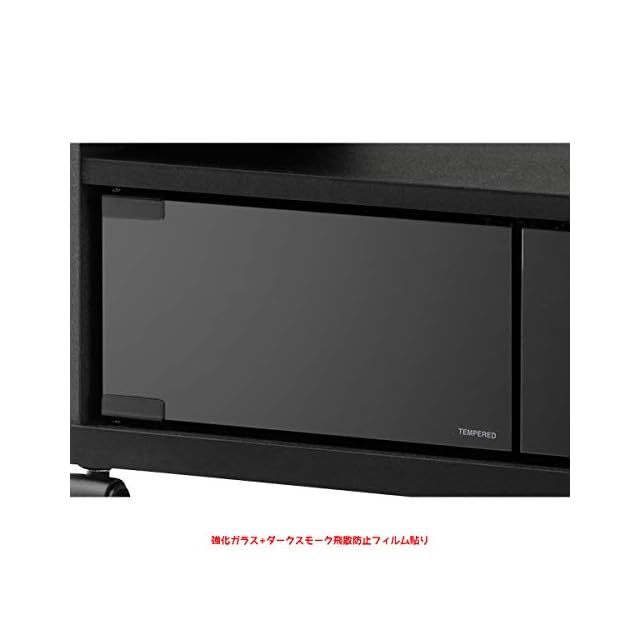 主材:合成樹脂化粧パーティクルボード、ガラス扉:強化ガラス(飛散防止ブラックスモークフィルム貼り)
