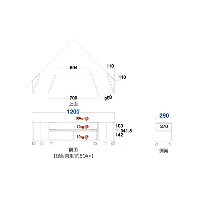 耐荷重:天板30kg 棚板10kg