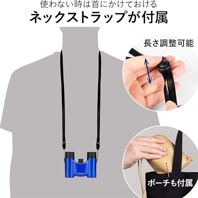 【超軽量コンパクトタイプ】折り畳み式双眼鏡、同クラス比※国内メーカー最軽量。※21mm径、マルチコート実装モデル比較。2019年10月ケンコー・トキナー調べ。重量たったの170g。軽量かつコンパクトで、折りたためばさらに小さく。