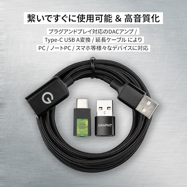 GRAPHT MINI DAC for GAMING 超小型 ゲーミングDAC 32bit/384kHz対応 ゲーミングアンプ ヘッドホンアンプ USB Type-C USB-C 3種のEQモード 音楽鑑賞 プラグアンドプレイ対応 2mUSB延長ケーブル付 USB変換アダプタ付 FPS TPS 音ゲー 音質向上 スマホ アンプ | LIS MART