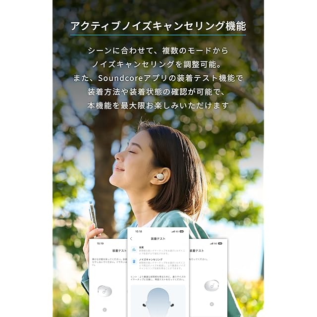 アクティブノイズキャンセリング搭載:イヤホンに搭載されたマイクが周囲の雑音を検知し低減。電車やバス等の交通機関やカフェ等でもクリアに音楽を楽しめます。